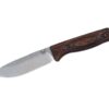Kniven är känd för sin robusthet och perfekta balans. Handtaget är ergonomiskt utformat för att ge ett säkert och bekvämt grepp, och är tillverkat av vackert stabiliserat, mörkt trä.