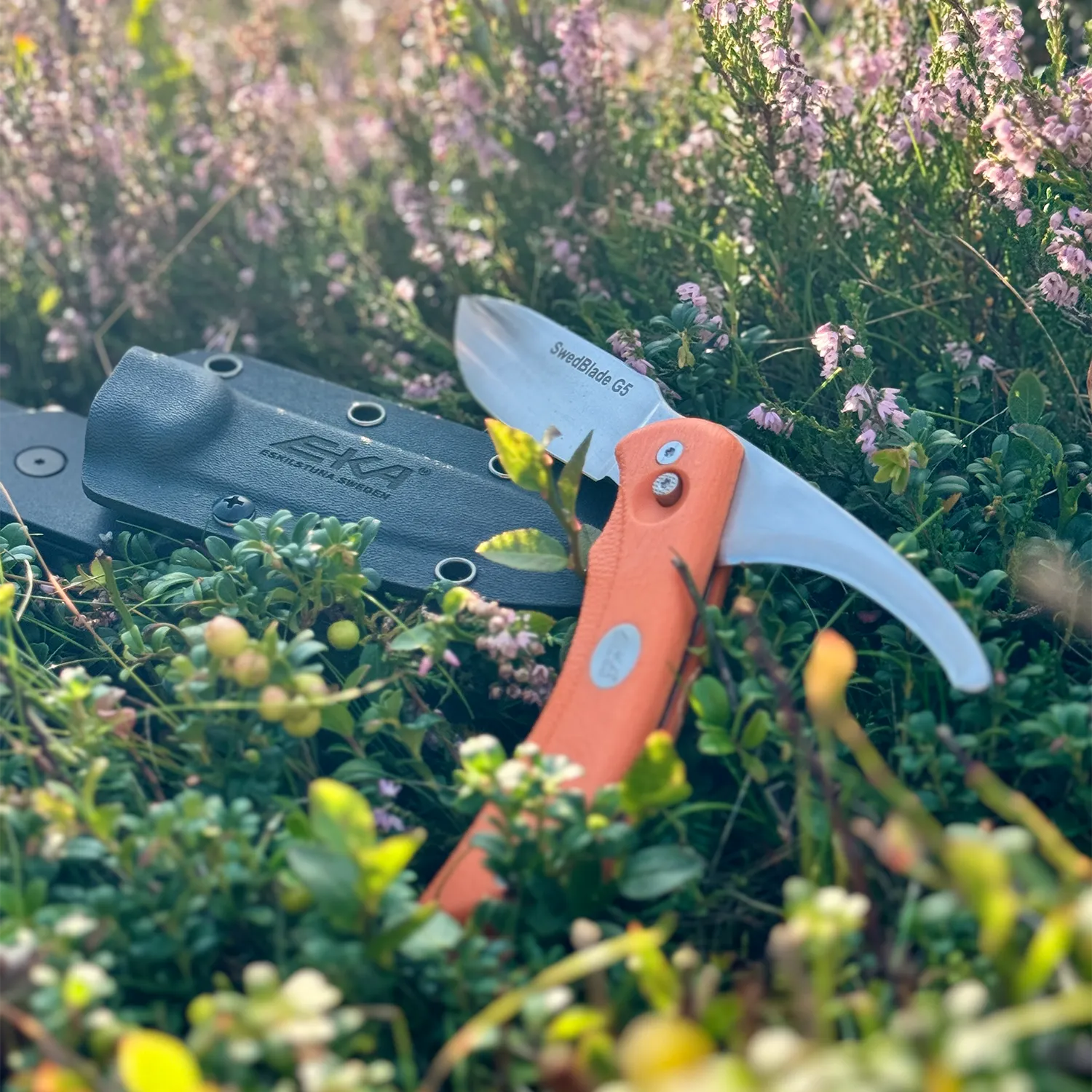 EKA SwedBlade G5 Orange är den nyutvecklade kombinationskniven skapad specifikt för den dedikerade jägaren. Den erbjuder enastående prestanda genom sitt unika system med växlingsbara blad, vilket eliminerar behovet av att bära två separata knivar.