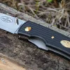 PC är en lätt, modern fällkniv med utmärkta tekniska egenskaper. Bladet är tillverkat i laminerat kobolt specialstål vilket borgar för en skärpevaraktighet utöver det vanliga. Bladlåsningen är av s k liner-locktyp, känd som en av de starkaste och säkraste bladlåsningarna i världen. Det svarta glasfiberarmerade skaftet i grilon är invändigt förstärkt med sidor i rostfritt stål vilket ger ett både starkt och lätt koncept. Med en vikt på bara 70 gram är den behaglig att bära i fickan och om kniven skulle bli smutsig är den enkel att rengöra med lite diskmedel och varmt vatten. Bladet är fixerat med smörjfria teflonlager och kan justeras i tröghet eftersom bladbulten är gängad, allt du behöver är en Torx T10 mejsel.