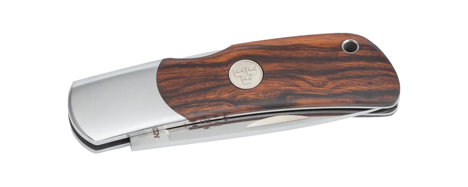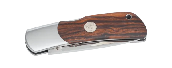 Handtaget är en hyllning till exklusivitet och tillverkas av antingen vackert Desert Ironwood eller elegant Mother of Pearl (mönster och nyans kan variera då varje kniv tillverkas för hand). Denna kombination av avancerad stålkvalitet och naturliga material i högsta klass resulterar i ett eggverktyg som är både lätt, följsamt och i sann världsklass. Ett Cordurafodral ingår.