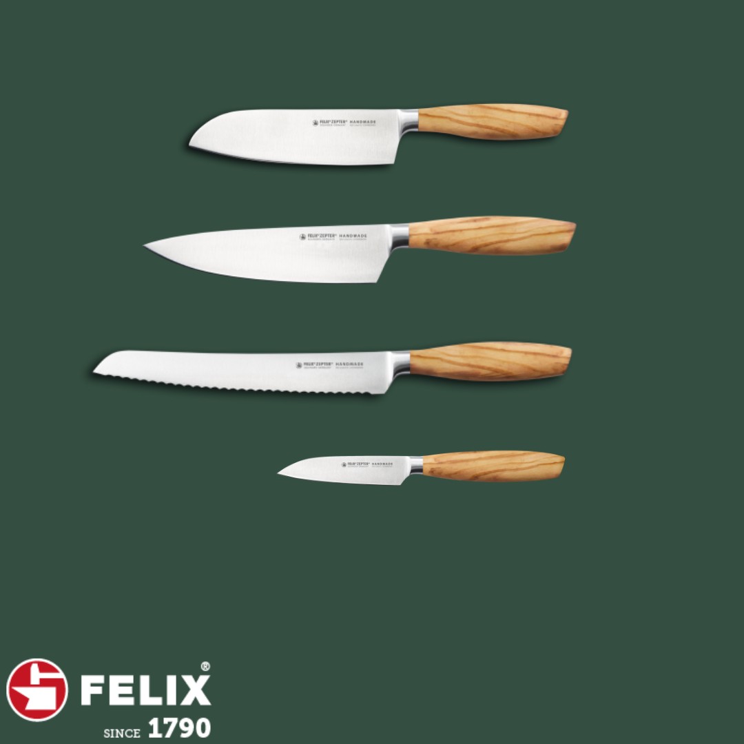 Ge dig själv eller någon du älskar det kompletta Felix Solingen OLIVE 4-delade knivsetet och upplev vad äkta smidda knivar kan göra i köket.