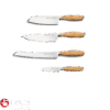 Ergonomi & Estetik: Alla fyra knivar har handtag av naturligt, unikt mönstrat olivträ. De ligger perfekt i handen och är en lyxig inredningsdetalj.