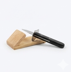 Det kompletta ostron setet! En hållare i fint trä som både skyddar din hand och hjälper till att hålla fast ostronen som skall öppnas...
