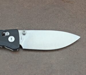 Möjligen hade jag föredragit att kniven varit utrustad med glidlager i brons istället för kullager. Varför kanske någon undrar. Jo, av det enkla skälet att det är mindre känsligt för damm, grus och vatten än vad glidlager är. Åtmistone på ett teoretiskt plan. Ingen fällkniv mår bra av att släppas på en sandstrand eller i en lerpöl å andra sidan.