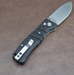 De skall vara stolta över den. God spänst i fjädrarna har jag redan nämnt och till det skall läggas utmärkt funktion. Bladet rör sig ingenstans, tvärtom sitter det hårdare än en del knivar med originalformen av det här låset kan jag avslöja. Dessutom är det lätt att släppa med både ett eller två fingrar.