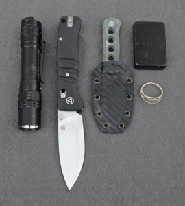 För att vara en såhär pass robust fällkniv med ett blad på närmare nio centimeter är den mycket lättburen. Handtaget är för det första rätt fyrkantigt i profil, fast tunt. Tjockleken är som sagt endast 1,3 cm. Den fyrkantiga formen gör att det inte heller finns något som sticker ut, läs flipperfena som kan fastna när kniven skall ned i en ficka.